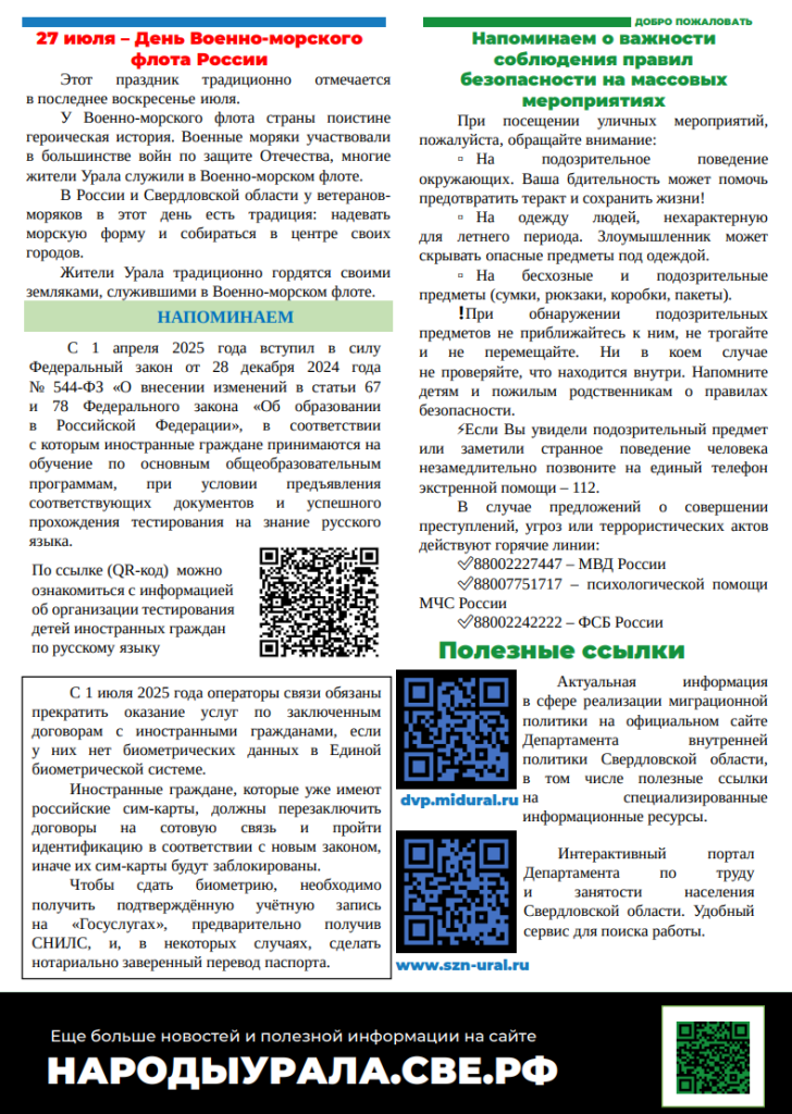 Свердловские полицейские проинформировали граждан об изменении законодательства в сфере миграционного учета