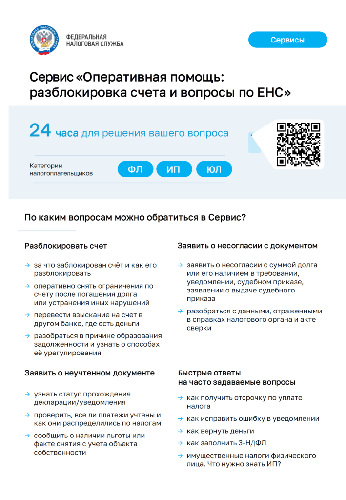 Сервис «Оперативная помощь: разблокировка счета и вопросы по ЕНС»