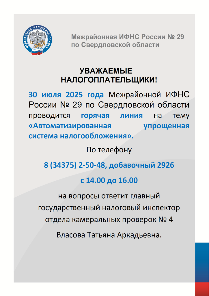 30 июля 2025 года проводится горячая линия на тему «Автоматизированная упрощенная система налогообложения»