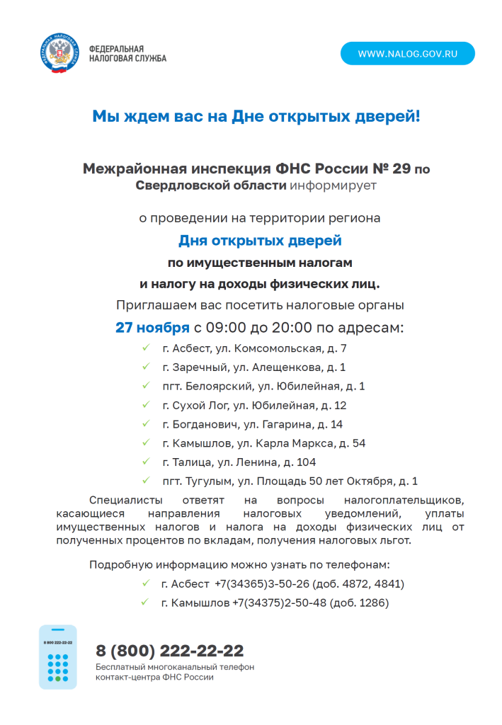 27 ноября 2025 года День открытых дверей по имущественным налогам и налогу на доходы физических лиц