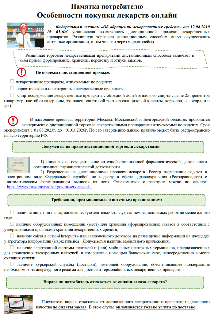 Памятка потребителю "Особенности покупки лекарств онлайн"