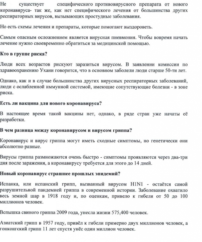 Информация Роспотребнадзора