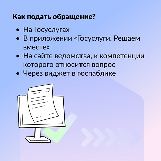 В карточках отвечаем на популярные вопросы о Платформе обратной связи – сервисе Госуслуг. Расскажите о ситуации, которая требует решения, или оставьте предложение по улучшению жизни региона. Вопрос возьмут в работу и сообщат о сроках.
