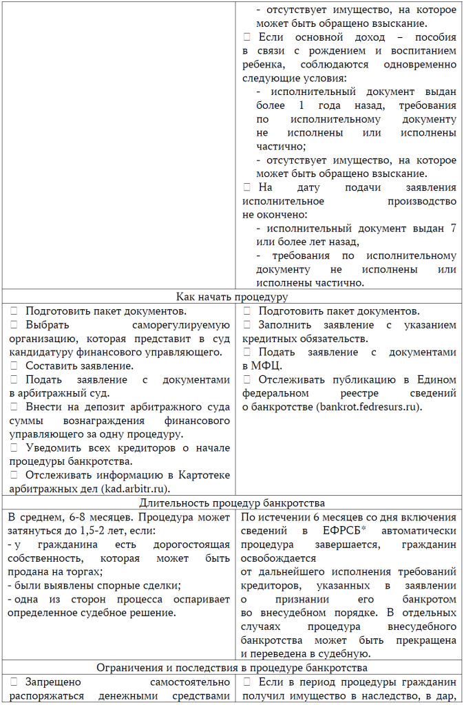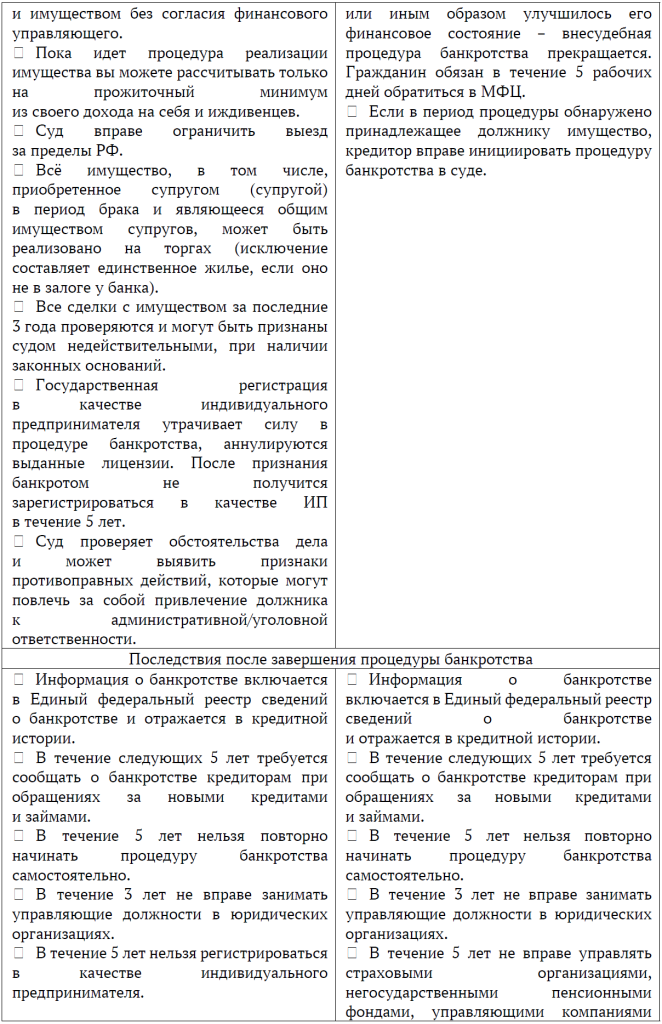 Не верьте обещаниям о быстром и лёгком избавлении от долгов. Единственный законный способ получить освобождение от оплаты обязательств – быть признанным банкротом в судебном или внесудебном порядке и пройти длительную процедуру, которая может прекратиться или завершиться без освобождения от исполнения обязательств. Но банкротство – крайняя мера, иногда длительный и юридически сложный процесс, который всегда влечет за собой неприятные последствия.