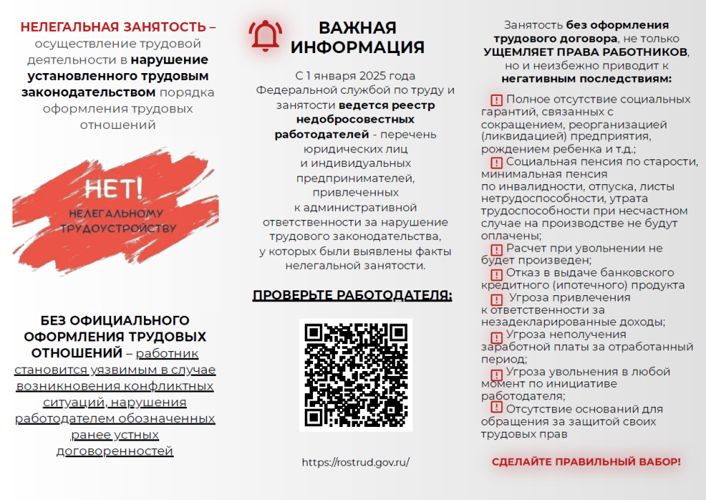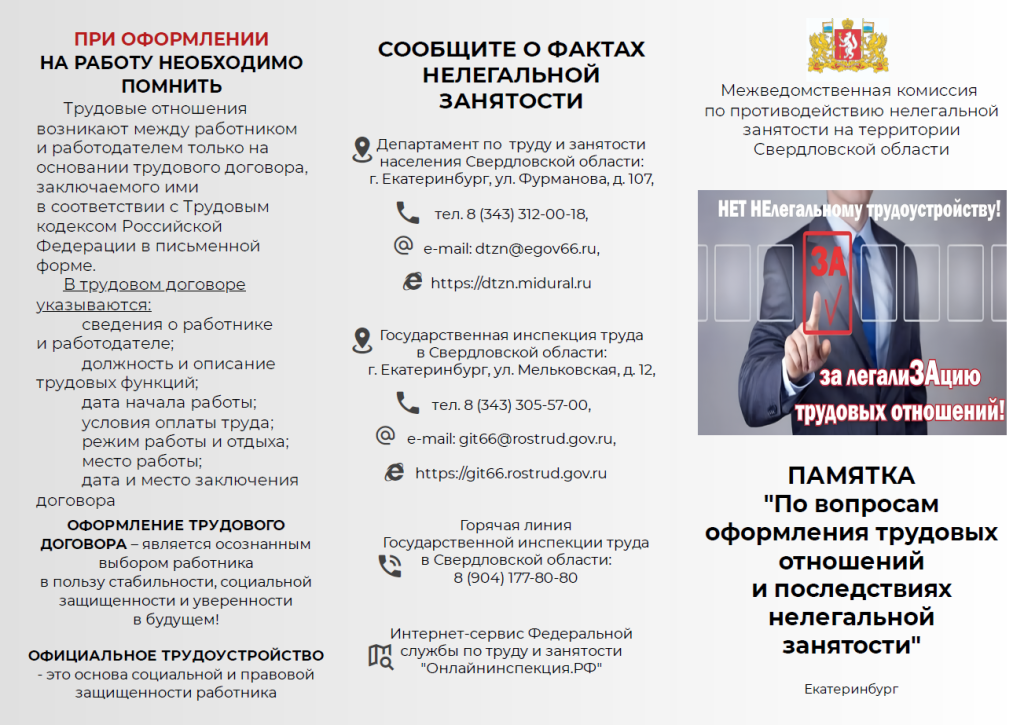 ПАМЯТКА "По вопросам оформления трудовых отношений и последствиях нелегальной занятости"