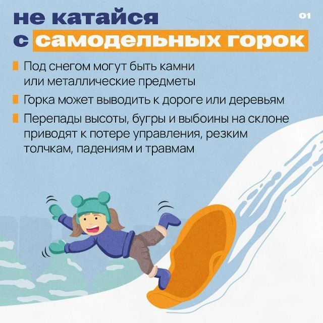 Безусловно, это время веселья, снежков и активного отдыха. Но важно не забывать о правилах безопасности. О каких, рассказали в карточках. Прочитай внимательно и запомни!