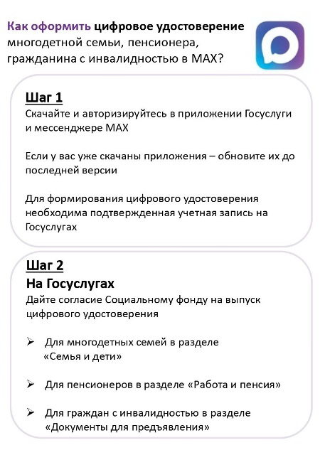 В нашем современном мире цифровые услуги становятся все более доступными и удобными. Теперь оформить цифровое удостоверение многодетной семьи, пенсионера или гражданина с инвалидностью можно прямо через мессенджер MAX.