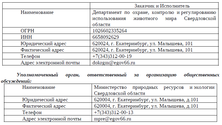 Департамента по охране, контролю и регулированию использования животного мира Свердловской области, 620004, г. Екатеринбург, ул. Малышева, 101, адрес электронной почты: dokrgm@egov66.ru;