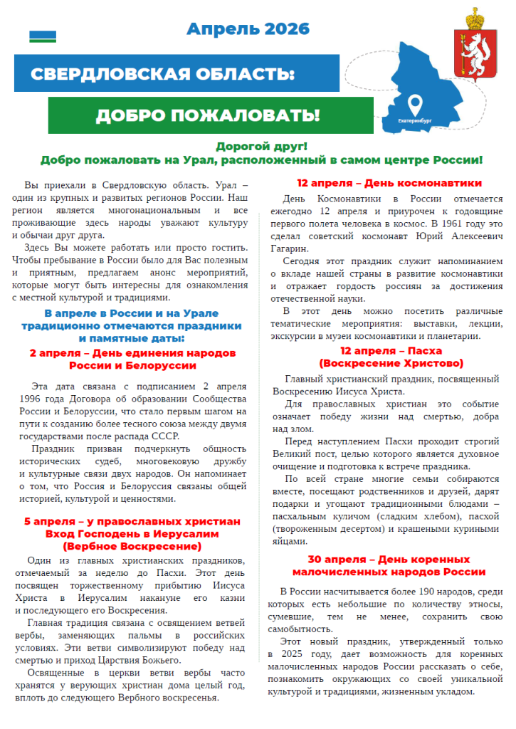 Информационный бюллетень на апрель