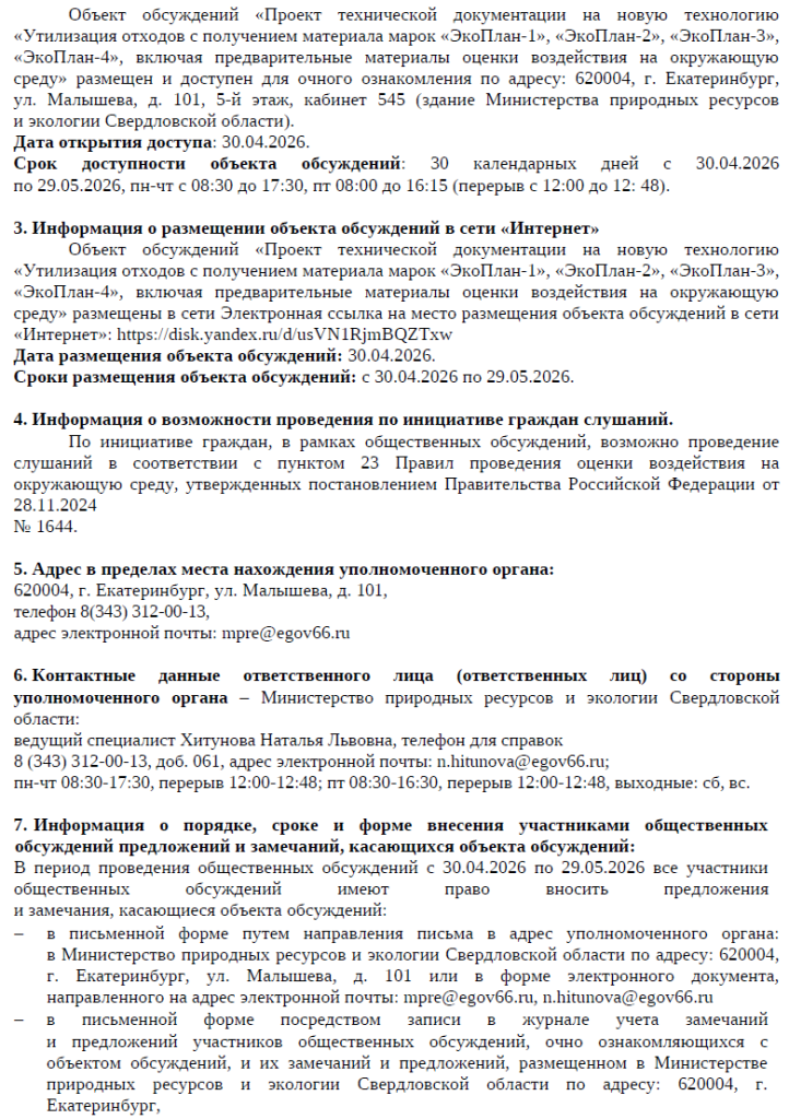 УВЕДОМЛЕНИЕ о проведении общественных обсуждений
