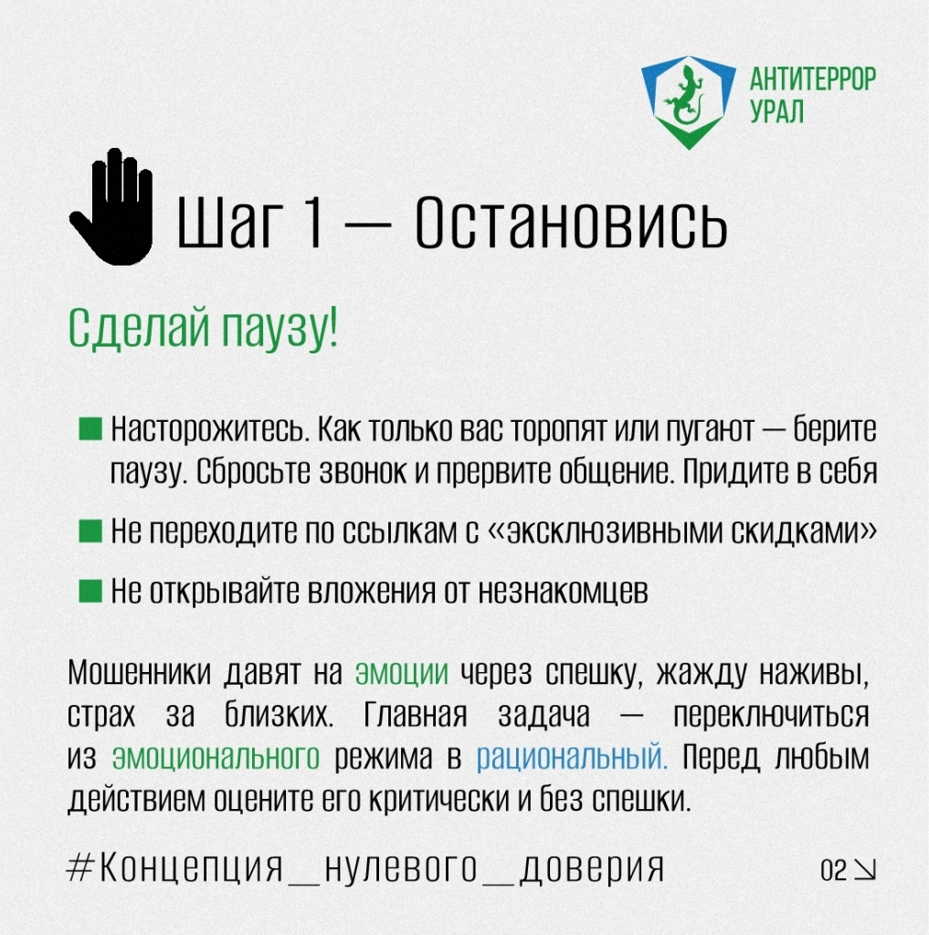 Помните: Мошенники играют на психологии: создают панику, давят на срочность, вызывают доверие, представившись коллегой, родственником, сотрудником правоохранительных органов или банков. Ваши данные из соцсетей, находящиеся в открытом доступе, используются мошенниками для подбора индивидуальных «ключей» к вам.