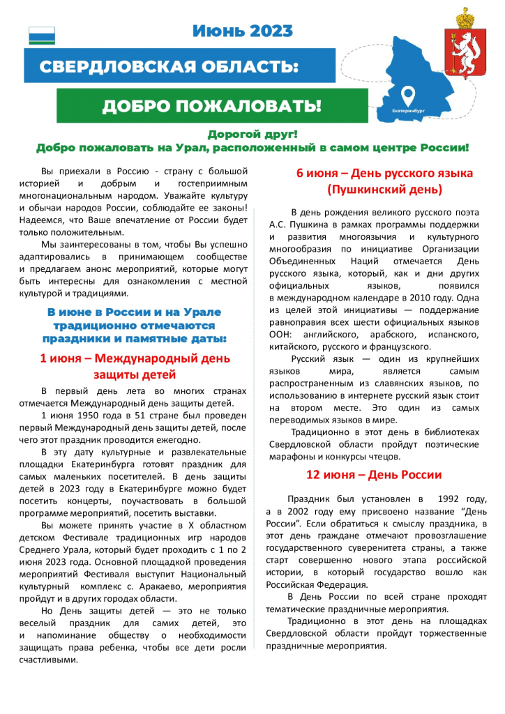 Информационный бюллетень для иностранных граждан на июнь 2023 года