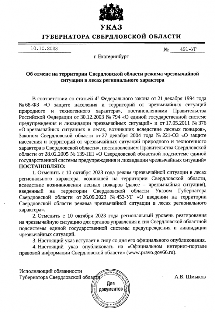 Отмена на территории Свердловской области режима чрезвычайной ситуации в лесах регионального характера