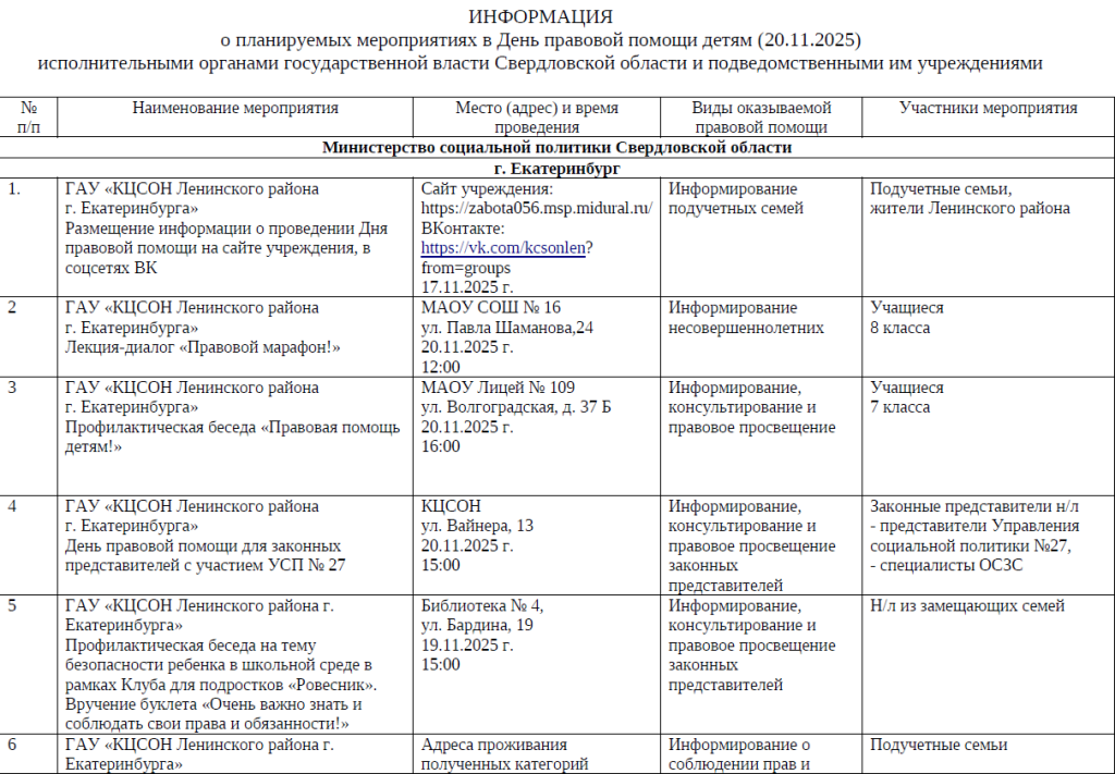 День правовой помощи детям в Свердловской области проводится ежегодно, начиная с 2013 года.