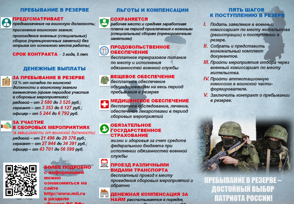 - ежемесячные денежные выплаты за пребывание в резерве, (кроме периодов участия в сборовых мероприятиях) от 2 580 до 6 792 руб.;