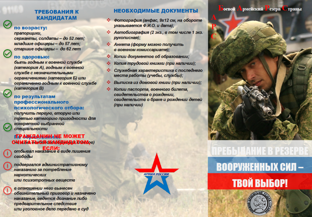 - по здоровью: быть годным к военной службе (категория А), годным к военной службе с незначительными ограничениями (категория Б) или ограниченно годным к военной службе (категория В);