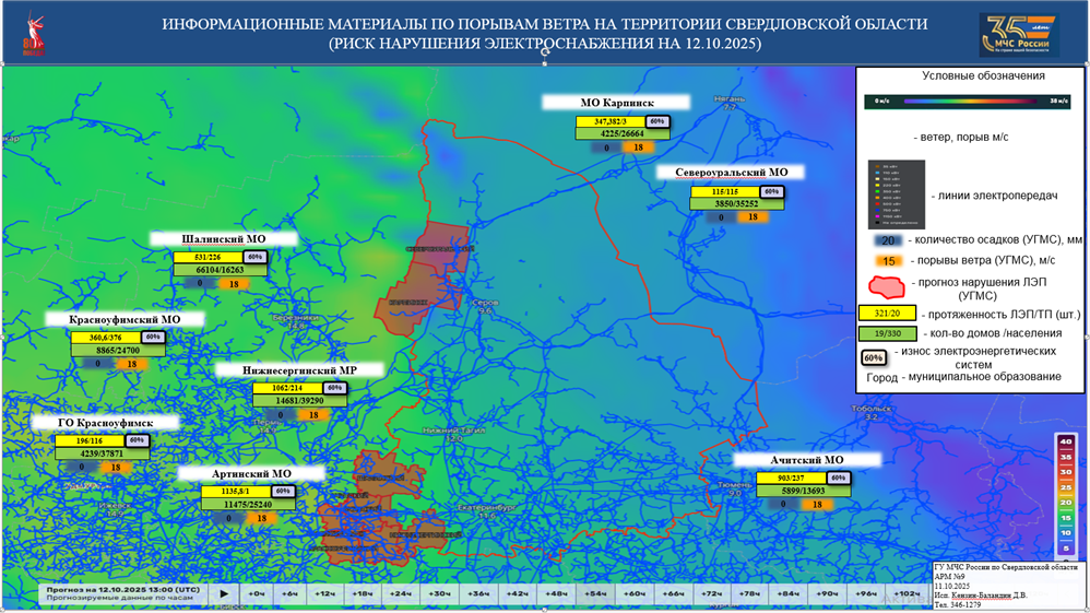 Детализированный прогноз возникновения чрезвычайных ситуаций на территории Свердловской области на 8-9 ноября 2025 года