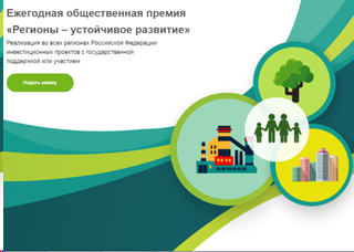В целях повышения инвестиционной привлекательности регионов Российской Федерации и создания новых механизмов финансирования инвестиционных проектов проводится Конкурс «Ежегодная общественная премия «Регионы - устойчивое развитие».